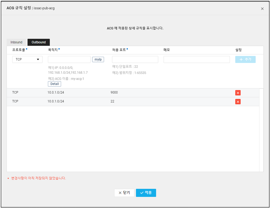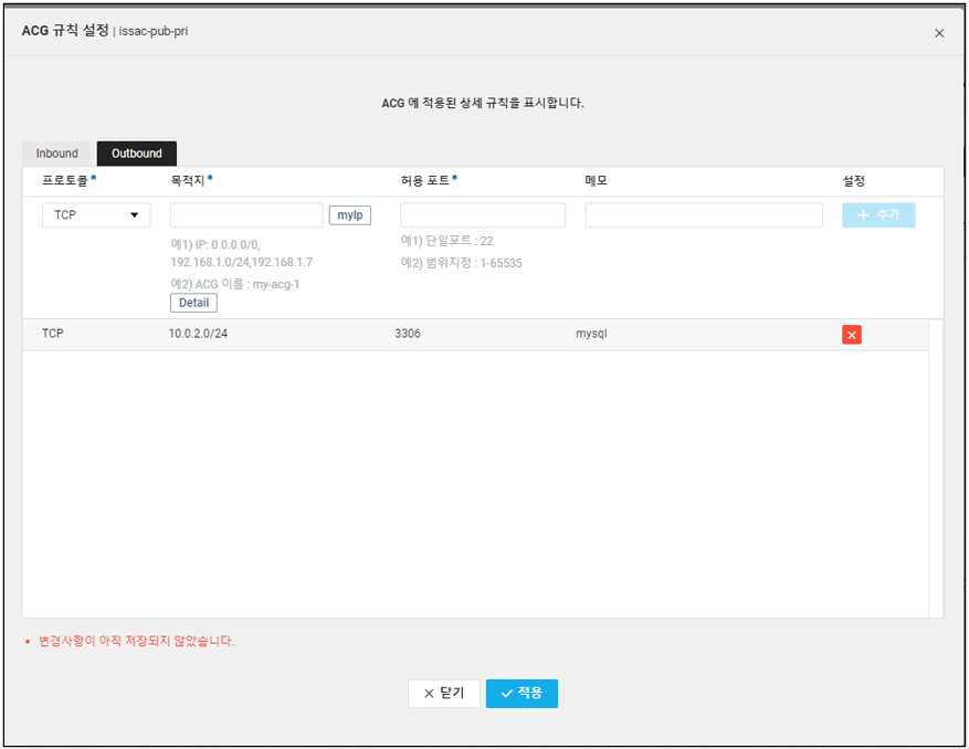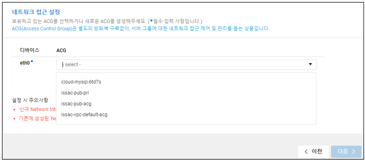 이전 포스팅에서 생성했던 ACG를 할당하는 페이지 입니다.