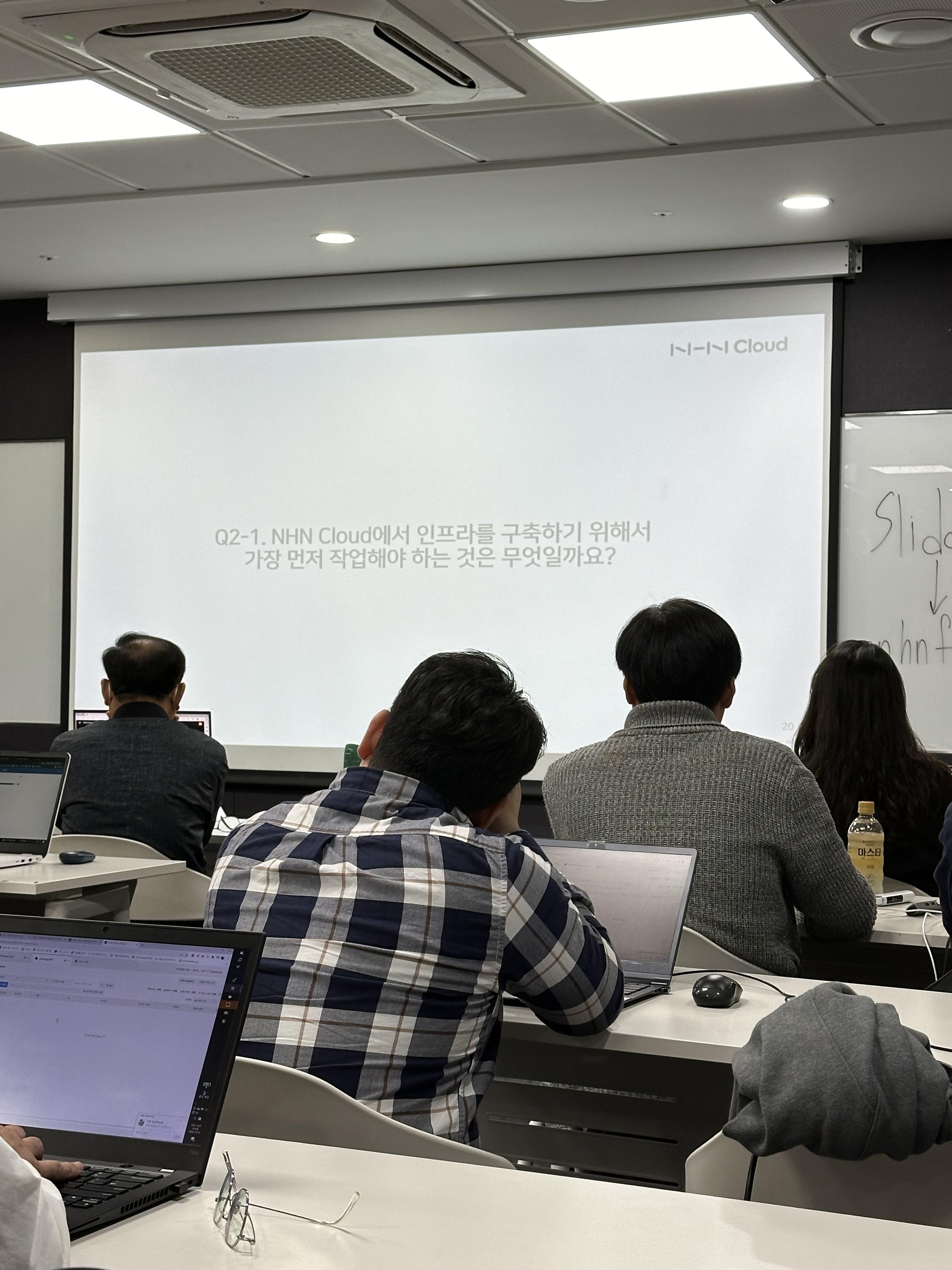아래 사진과 같이 강사님이 집적 질문 하시면서 NHN Cloud 인프라 구축에 관련된 내용을 설명해주셨습니다