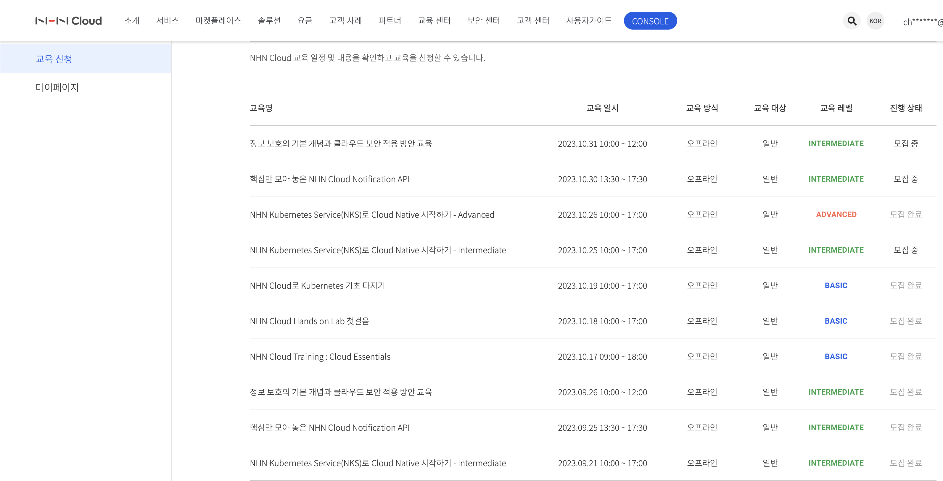 교육신청은 NHN Cloud 교육 홈페이지[https://www.nhncloud.com/kr/edu] 에서 "무료"로 신청 가능합니다!